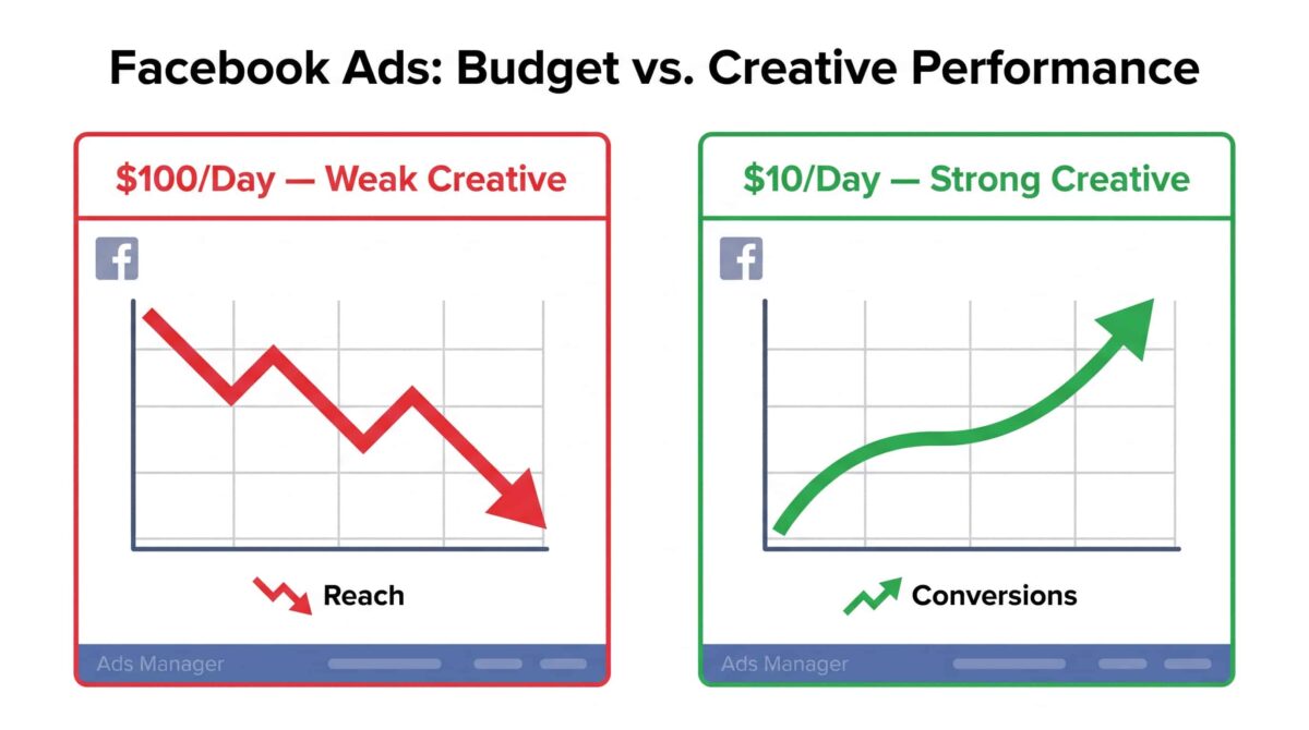 Your budget determines how many people see your ad. But your creative — the image or video, the headline, the copy, the hook — determines what those people do when they see it.